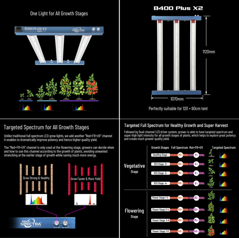 LED Grow light – 400W, targeted spectrum, highest intensity, Coverage of 120 x 60cm